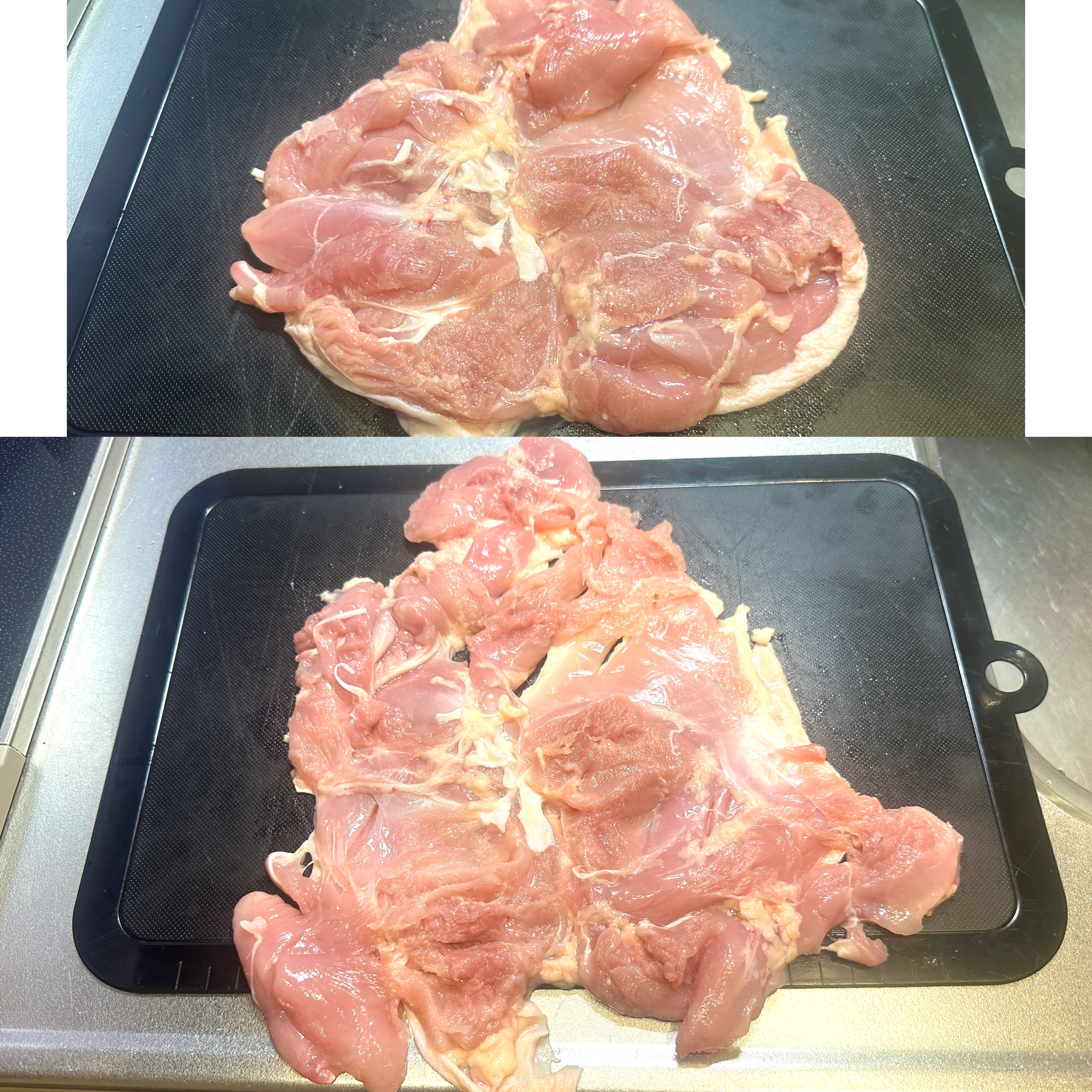 このページの参照数合計:186 今日:1 昨日:1秋休み5日目は早朝1人目が覚めてしまったので鳥モモ肉を筋切りして観音開きにしておきました表面積がこんなに広く成りました果たして今夜上手…