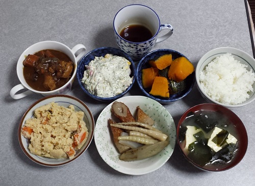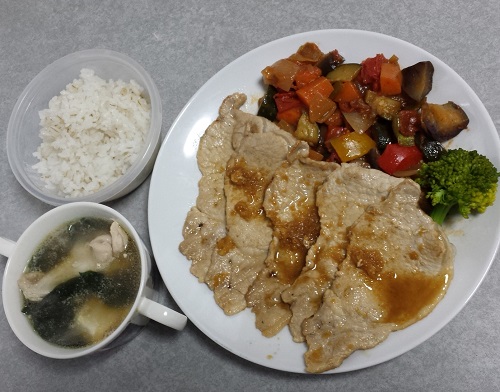 今日の朝ご飯、朝っぱらからロース170gも食べてしまいました、ラタトゥユは、玉葱・人参・ナス・ズッキーニ・トマト・パプリカ赤・パプリカ黄・ピーマンで作りました …